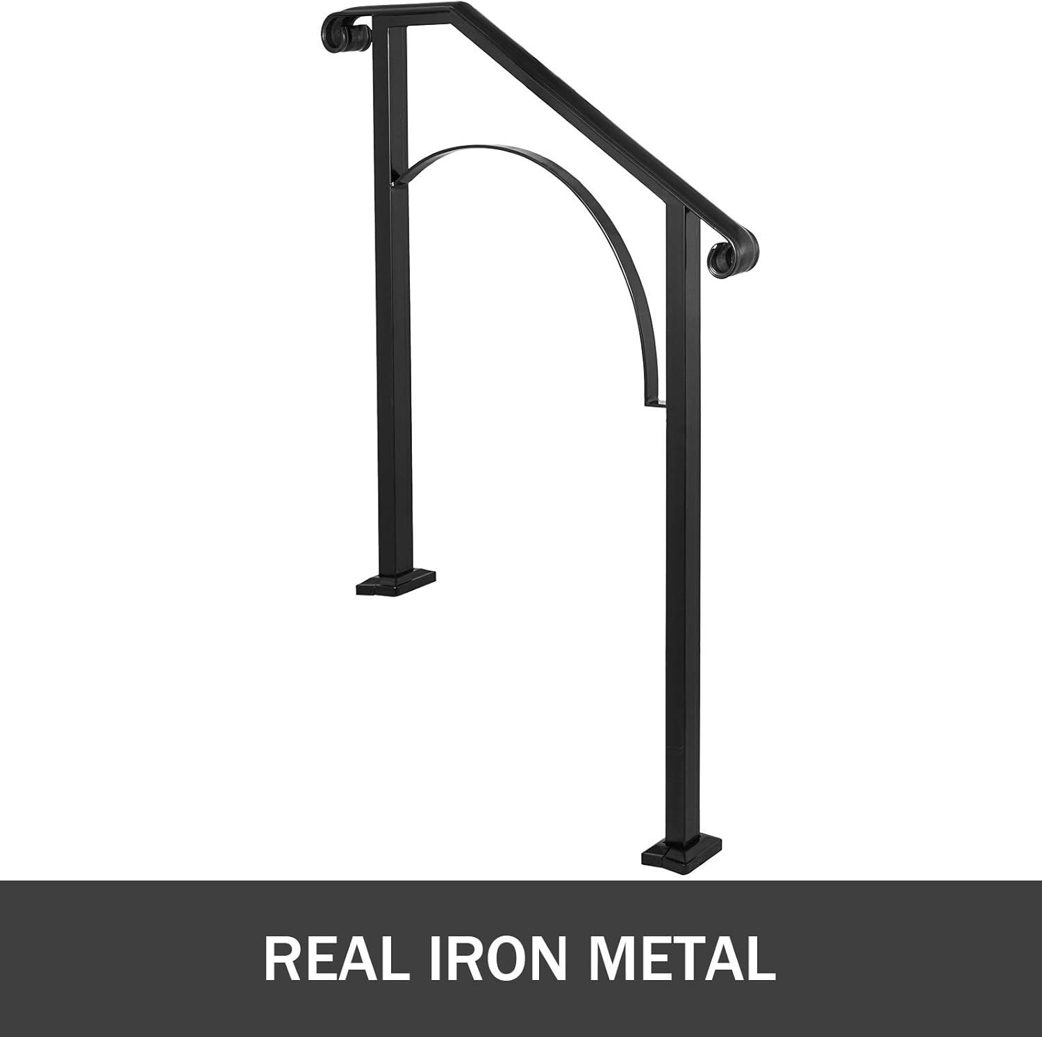 To change the direction of the railing, the 90 solid elbow (in combination with two internal couplings) is used. Includes all mounting hardware for concrete and wood. Handrails for outdoor steps wrought iron handrail 2 or 3 step porch deck railing. It is recommended for those that do not have a solid mounting surface. Starter kits come with a beechwood handrail, grey powder coated steel balusters, 1/8 inch horizontal stainless steel cable infill, handrail elbow, handrail end cap, and all necessary hardware to complete installation. Product is hand made in canada by highly trained professionals that are masters of their craft. Shop trendsetting styles to spruce up any space. 1 or 2 step handrail solid steel wrought iron sturdy safety rail black. With an adjustable pitch from 0 to 38 degrees, instantrail is designed to fit the rise of almost any stair. Custom full round and round with a flat bottom railing profiles are available in both straight and bending versions. This rule is designed to provide enough walking space up and down the staircase. Always plumb, cut and fit your rail to the steps before inserting post mount brackets into the posts. Routed rail makes building a deck the 6 ft.